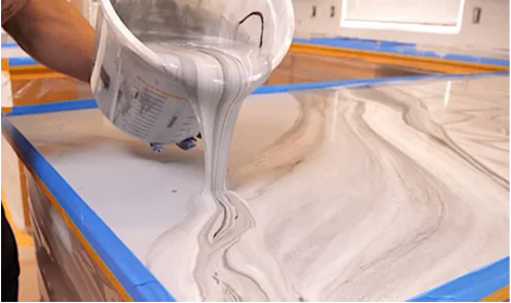 - Solid Color Epoxy: We pour and spread the epoxy evenly, using tools to add subtle patterns or textures.