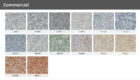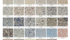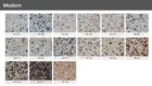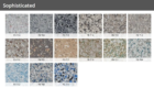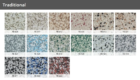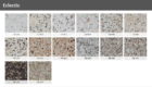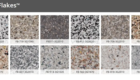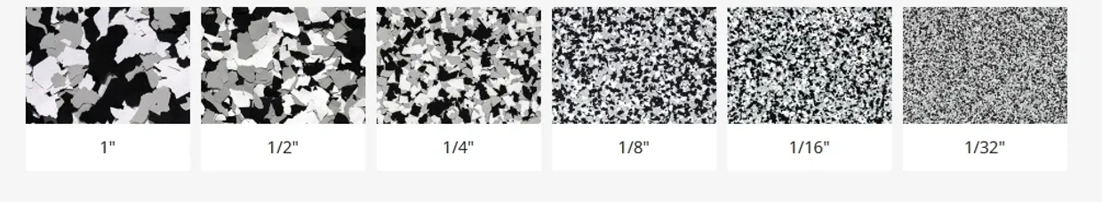 (1”), 1/2”, 1/4”, 1/8”, 1/16”, and 1/32”. Each size profile uniquely influences the appearance of the overall flake floor. Larger flake sizes are more random in shape and offer a broad range of dimensions, whereas smaller flakes become more consistent in shape and size as they are reduced.