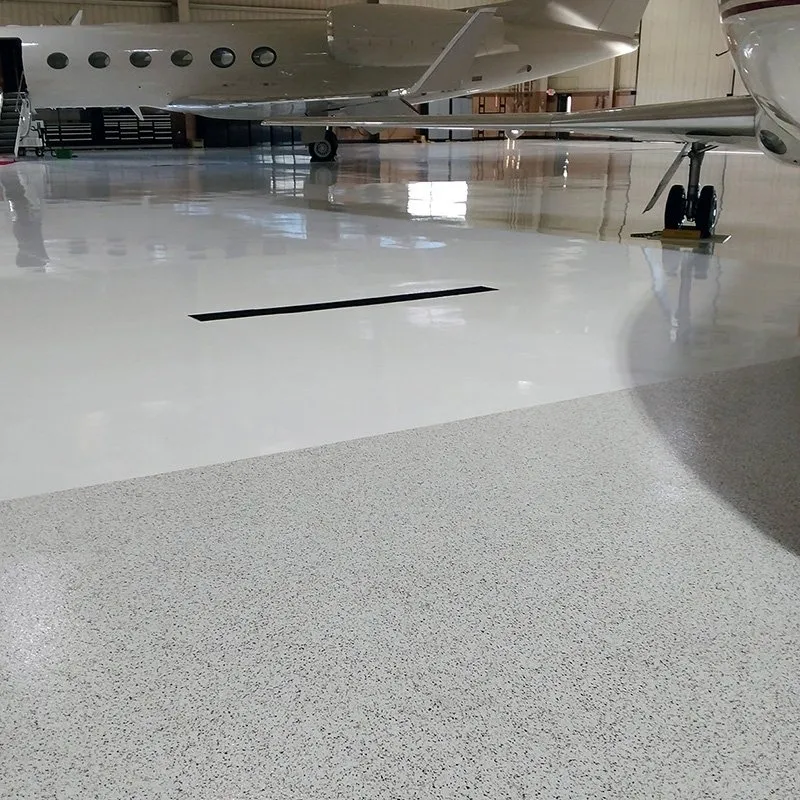 Maintenance is easy. Sweep or vacuum regularly, and mop with mild detergent. Spills, oil, and dirt typically wipe away quickly thanks to the sealed epoxy surface.