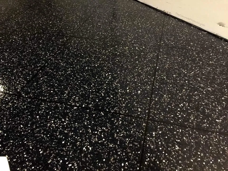 To seal the flakes and enhance durability, we apply a clear, non-slip topcoat. This protective layer adds resistance to wear, chemicals, and UV exposure, making your floor safe and long-lasting. It also gives the surface a glossy, professional finish that’s easy to clean and maintain.